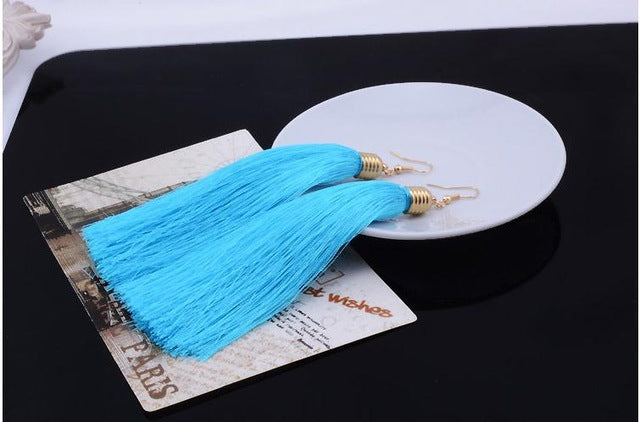 Earring Type: Drop EarringsItem Type: EarringsFine or Fashion: FashionBrand Name: LZHLQStyle: EthnicModel Number: 16KJ-EH05Metals Type: Zinc Alloyis_customized: YesGender: WomenShape\pattern: GeometricMaterial: MetalLength: 14.3cmWeight: 10gPacking: Paper bagitem type: Fashion Earrings /earringcolour: 11 colourspattern: cotton tasselmaterial: cotton +alloy